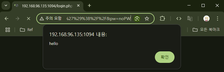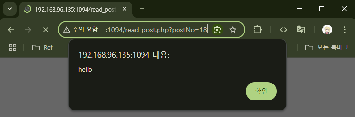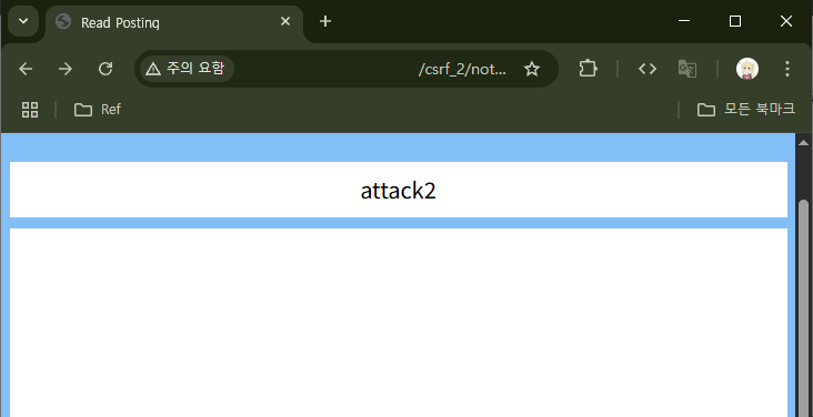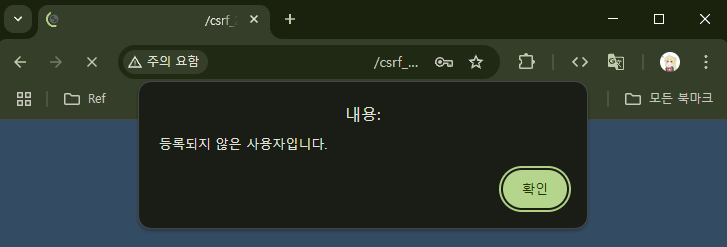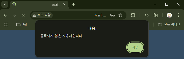 하지만 URL이 너무너무 수상하게 생겼다. 설령 URL을 다른 URL로 위장한다고 해도(예를 들어 URL 단축 서비스 사용), 해당 링크를 클릭한 사용자는 다음의 화면을 마주하게 될 것이다.