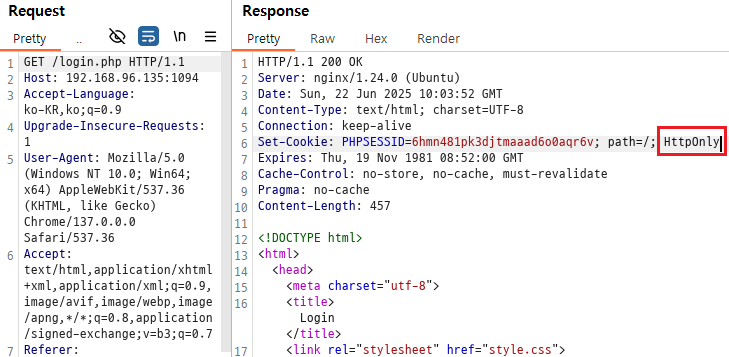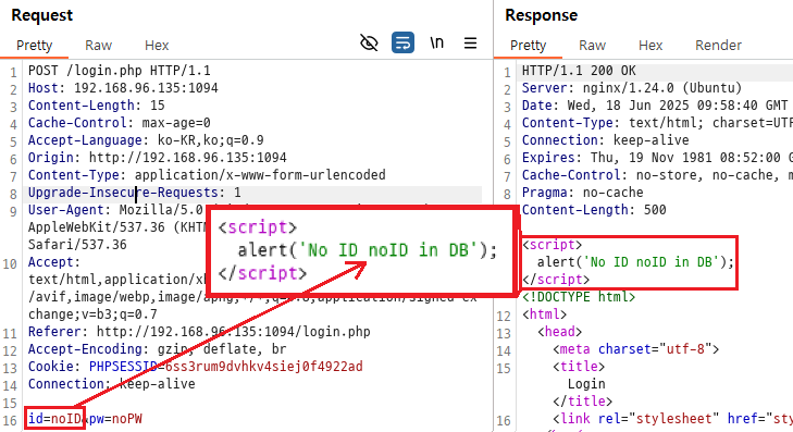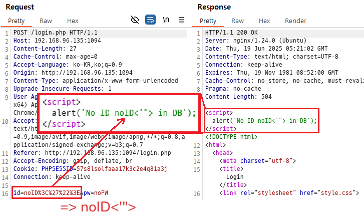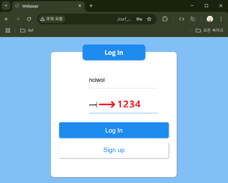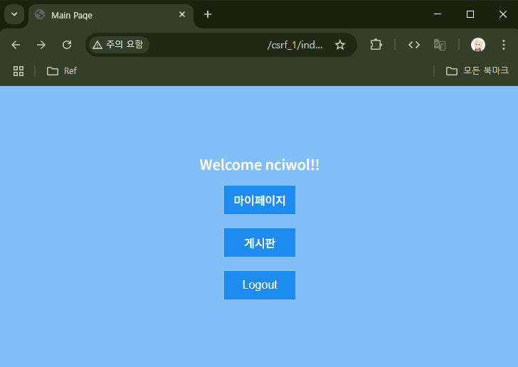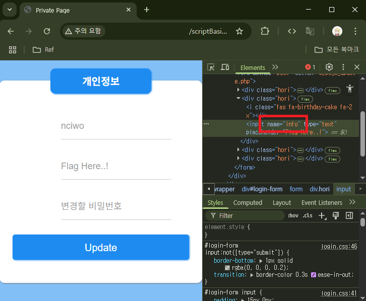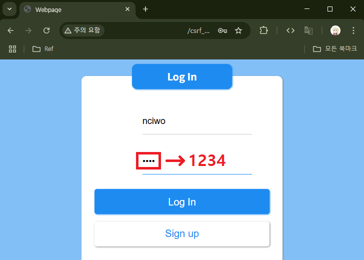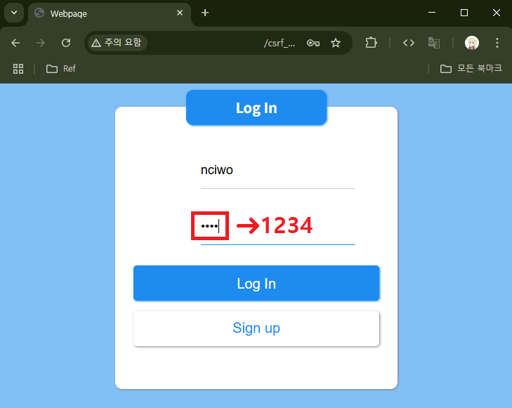 login.php에 들어가 ID: `nciwo`, PW: `1234`로 로그인을 시도해보겠다.