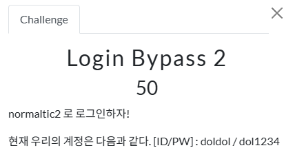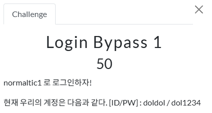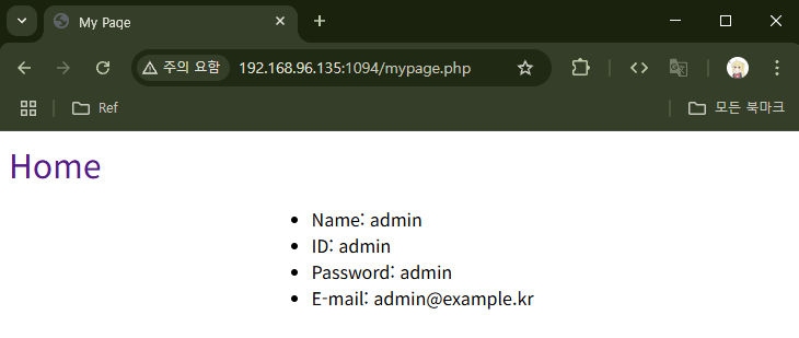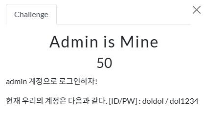 `[아이디]`라는 ID로 계정을 생성하면 해당 ID와 함께 `[아이디]_admin`이라는 ID로 관리자 계정이 생겨난다. 이번 문제에서부터는 mypage.php 페이지에서 회원정보(정확히는 비밀번호만) 수정이 가능해졌다.