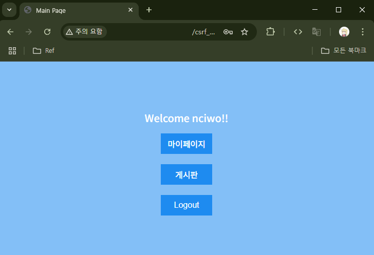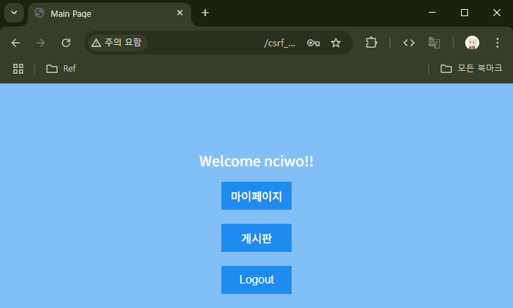 `확인` 버튼을 누르면 로그아웃되고, index.php 페이지로 돌아간다. 사용자에게 들키지 않기 위해서는 이렇게 알림창이 뜨고, index.php 페이지로 돌아가면 안된다.