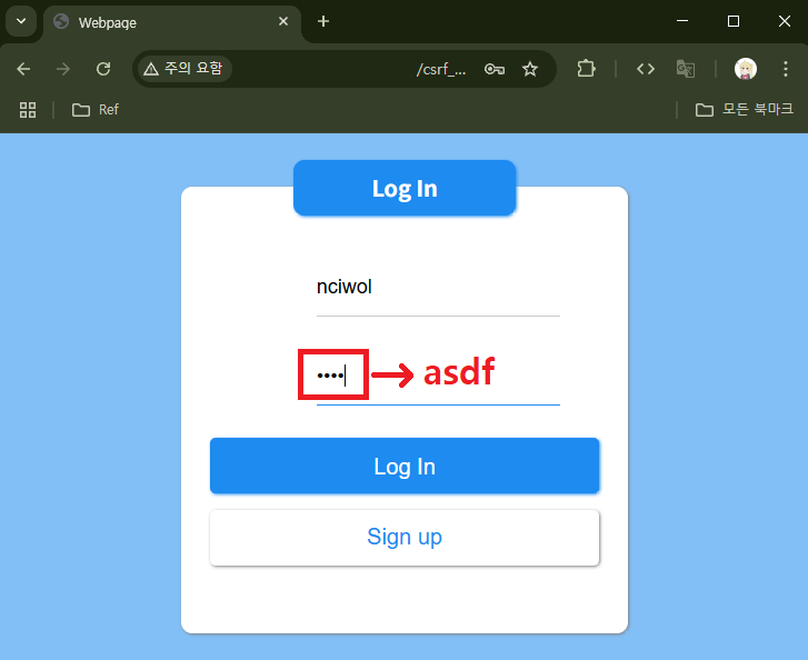 앞으로 로그인을 할 때 비밀번호에는 `nciwo`가 아닌 `asdf`로 해야한다.