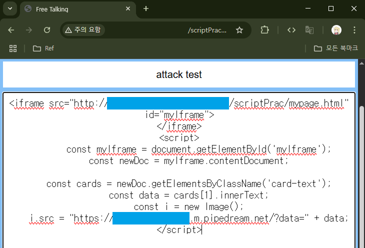 <iframe> 태그에서 `sandbox` 속성을 이용하면 스크립트 등을 차단할 수 있다.