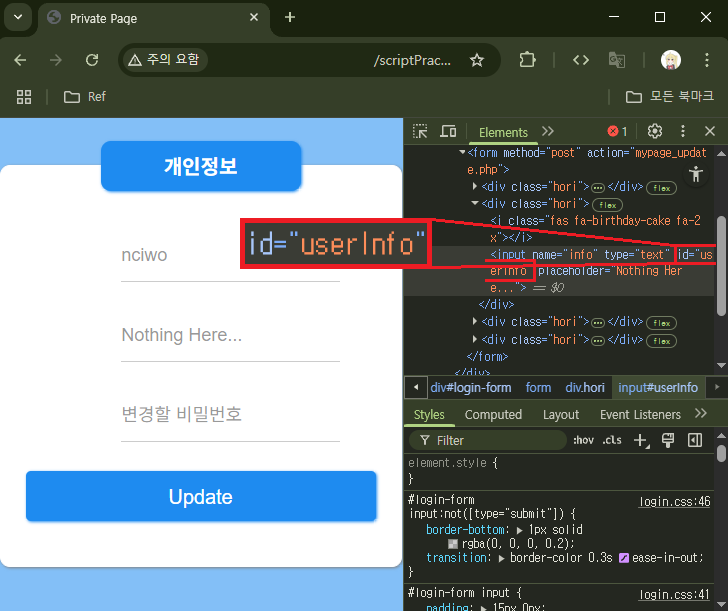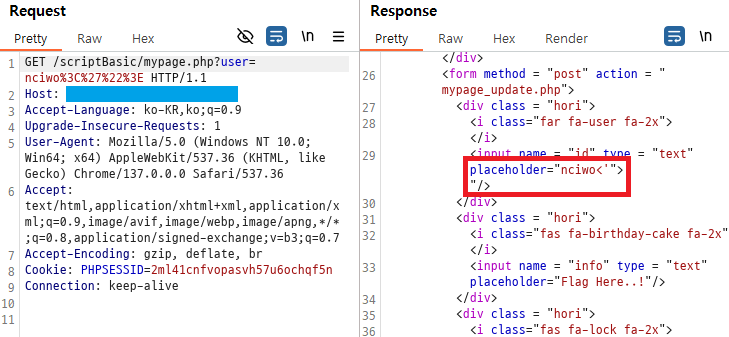 `src`의 값을 확인해보니 mypage_update.php? 수상하다.