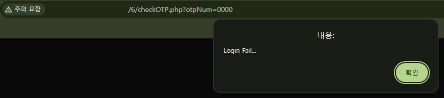 처음 변경했던 `1234`라는 비밀번호를 입력하니 로그인에 실패했다.